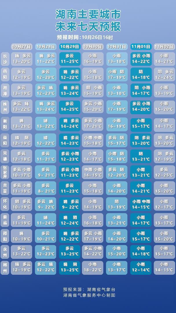 湖南最新天气预报